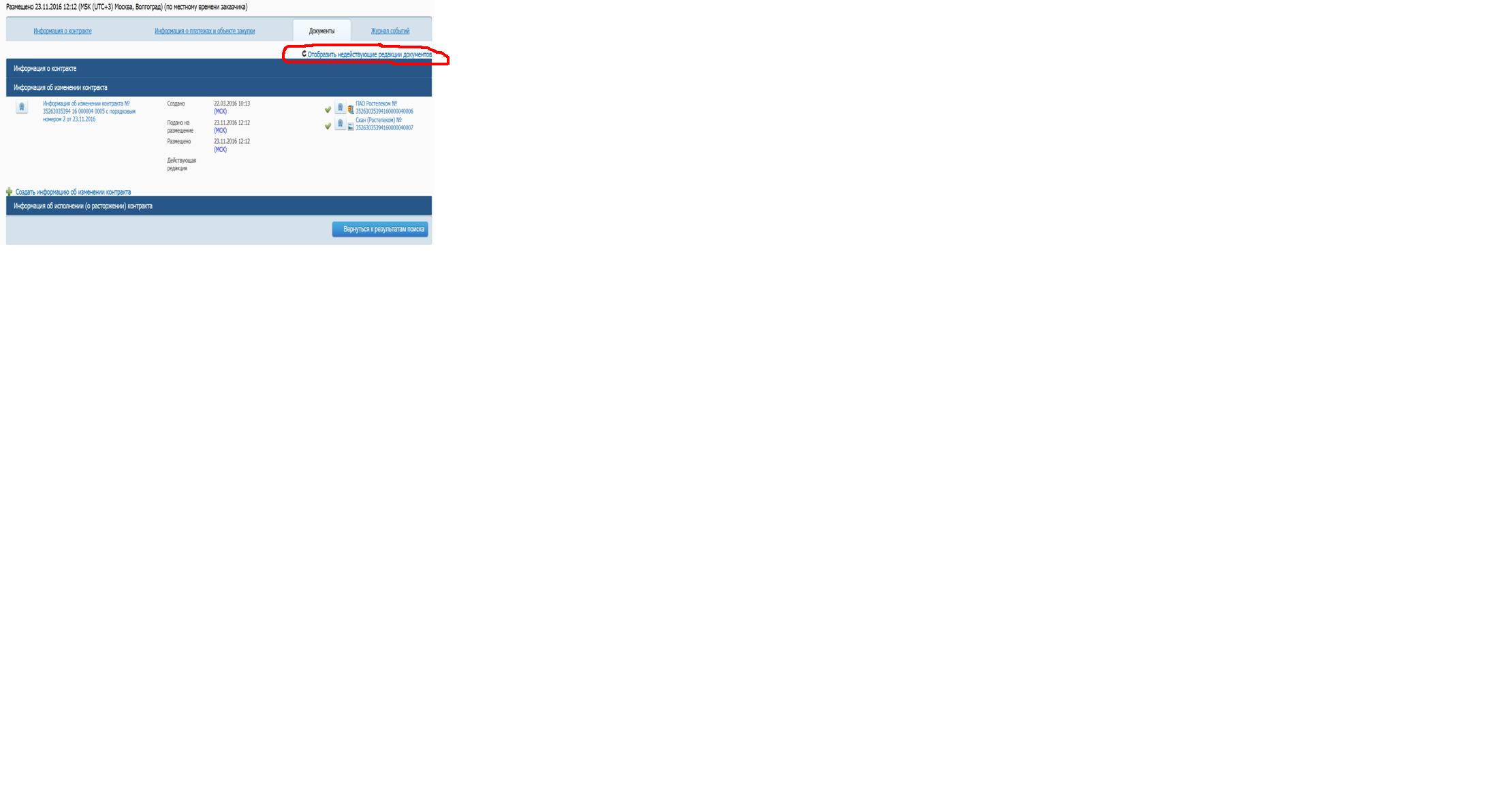 Elena30 писал(а):Уважаемая МКУК. Извините, конечно, за мой непрофессионализм, но не могу найти эту заветную ссылку. Я захожу в Реестр контрактов, нахожу этот контракт, открываю его карточку, но там такой функции не увидела. Подскажите, плиз