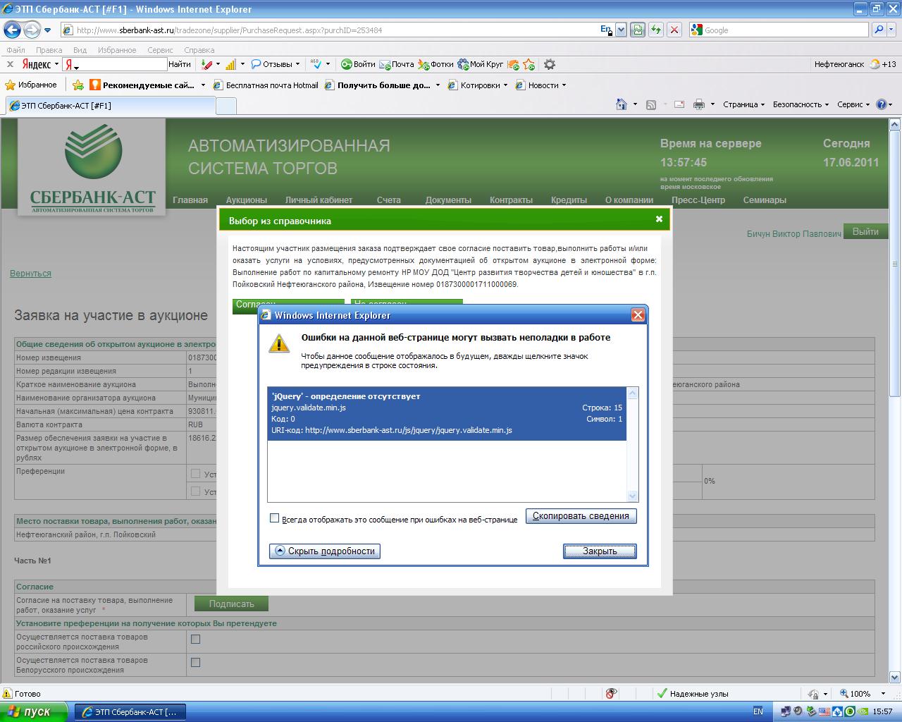 sibir2006 писал(а):При подаче первой части заявки не заполняется поле "согласен". При проверке работы ЭЦП - работает корректно. После проведения регламентных работ на площадке сбербанка появилась данная проблема. Сбербанк - АСТ не решает проблему, все известные манипуляции выполнены.