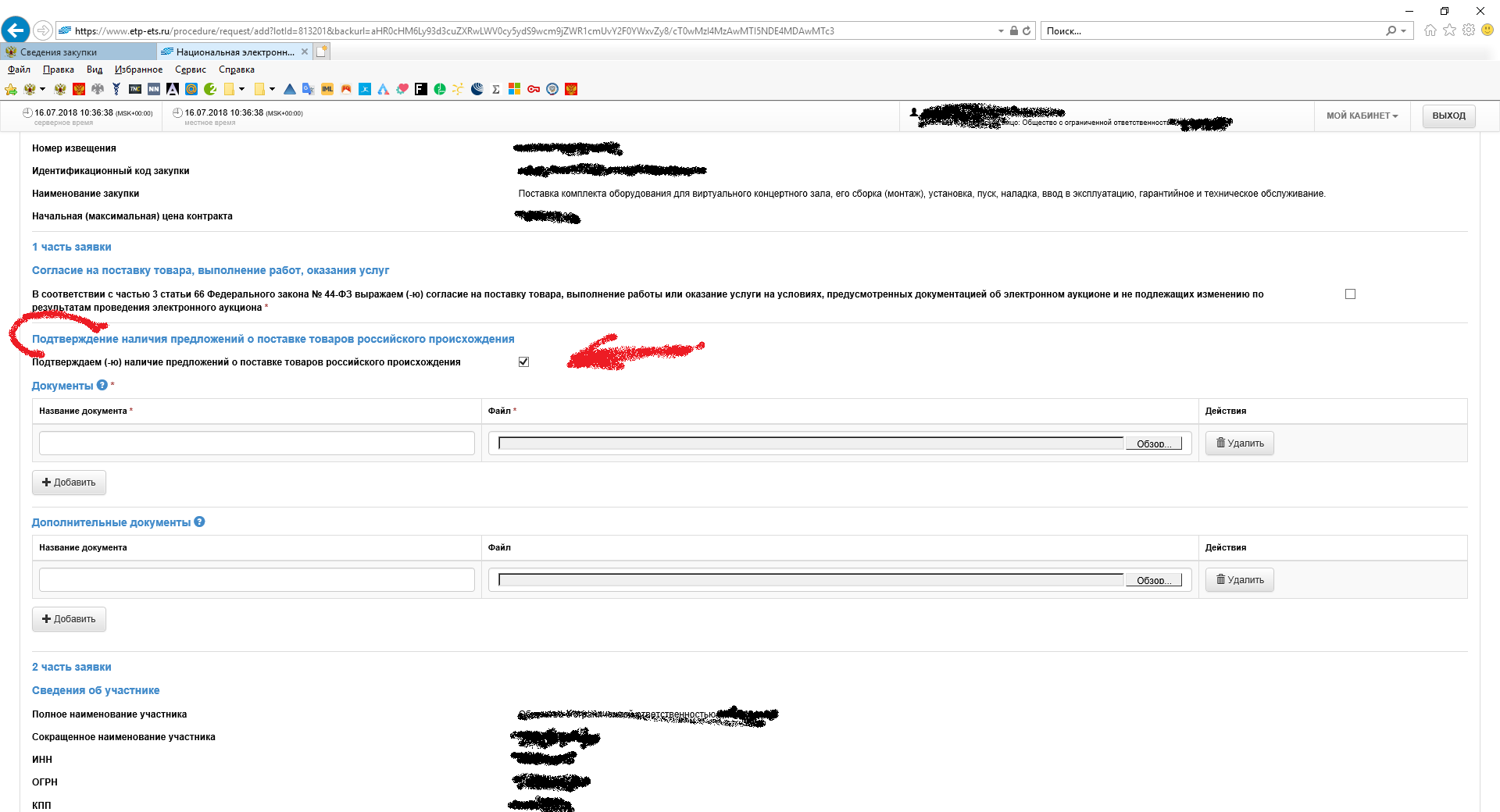 Заявка на участие в электронном аукционе должна состоять из двух частей: