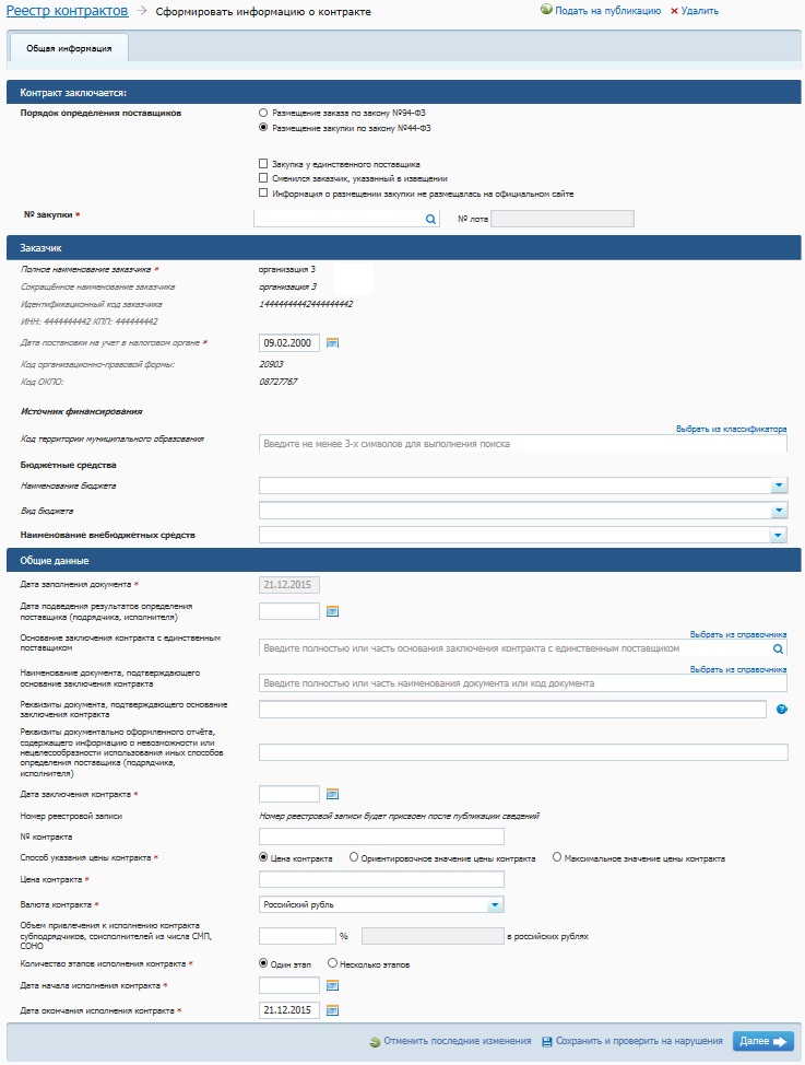 А дальше, как вам уже написала AnaStaSijA, в блоке Общие данные выбираете основание заключения контракта с единственным поставщиком (в вашем случае - п. 25 ч.1 ст. 93 44-ФЗ)
