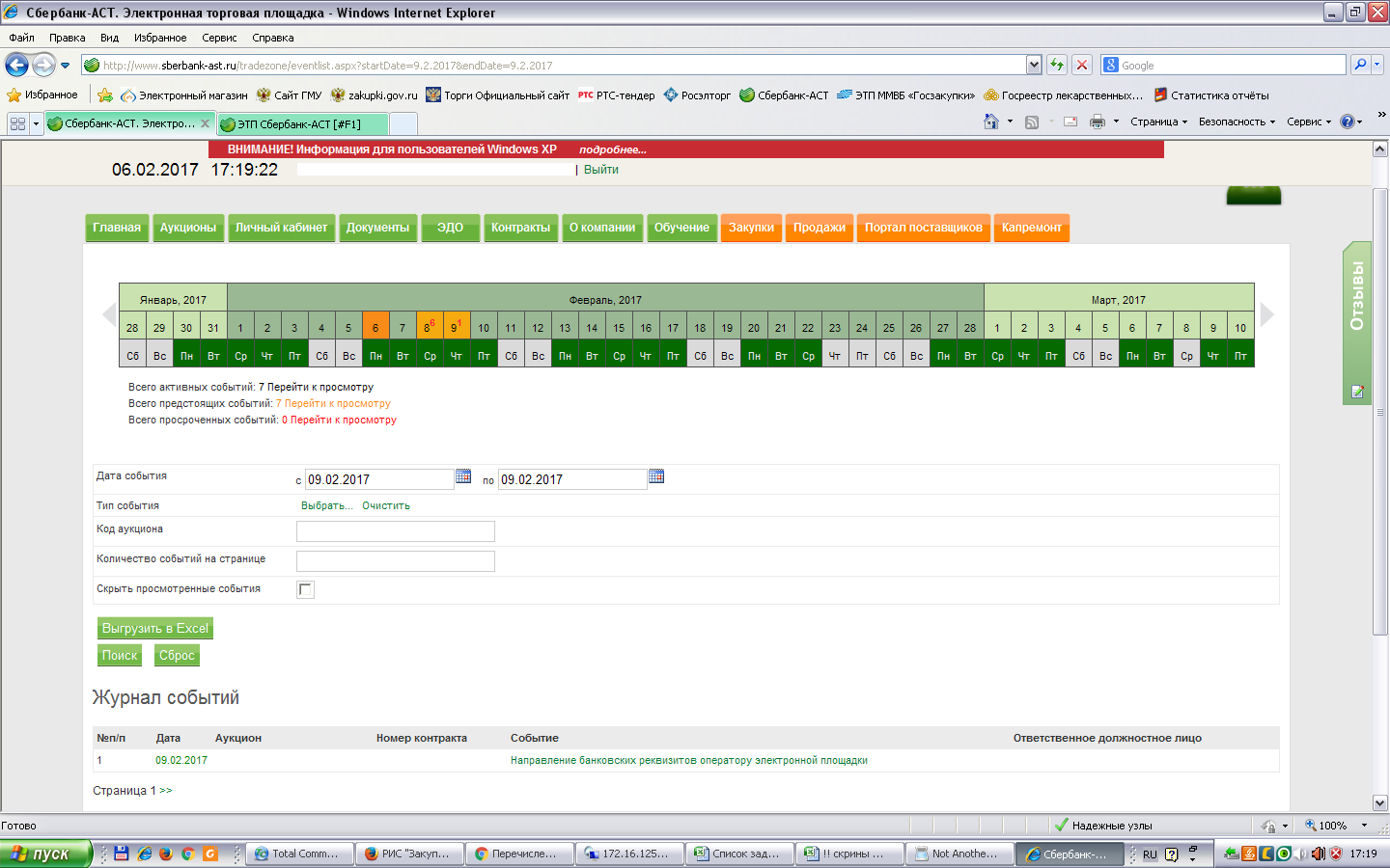 На площадке "Сбербанк-АСТ" в календаре событий светится "Направление банковских реквизитов оператору электронной площадки".