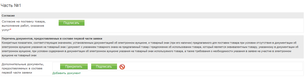Но на ЭТП появляется поле "Перечень документов, предоставляемых в составе первой части заявки ". Оно в какой-то серой рамке. И возможность прикрепления файла. Я правильно понимаю, что там нужно будет прикрепить только согласие на участие по форме, указанной в аукционной документации?