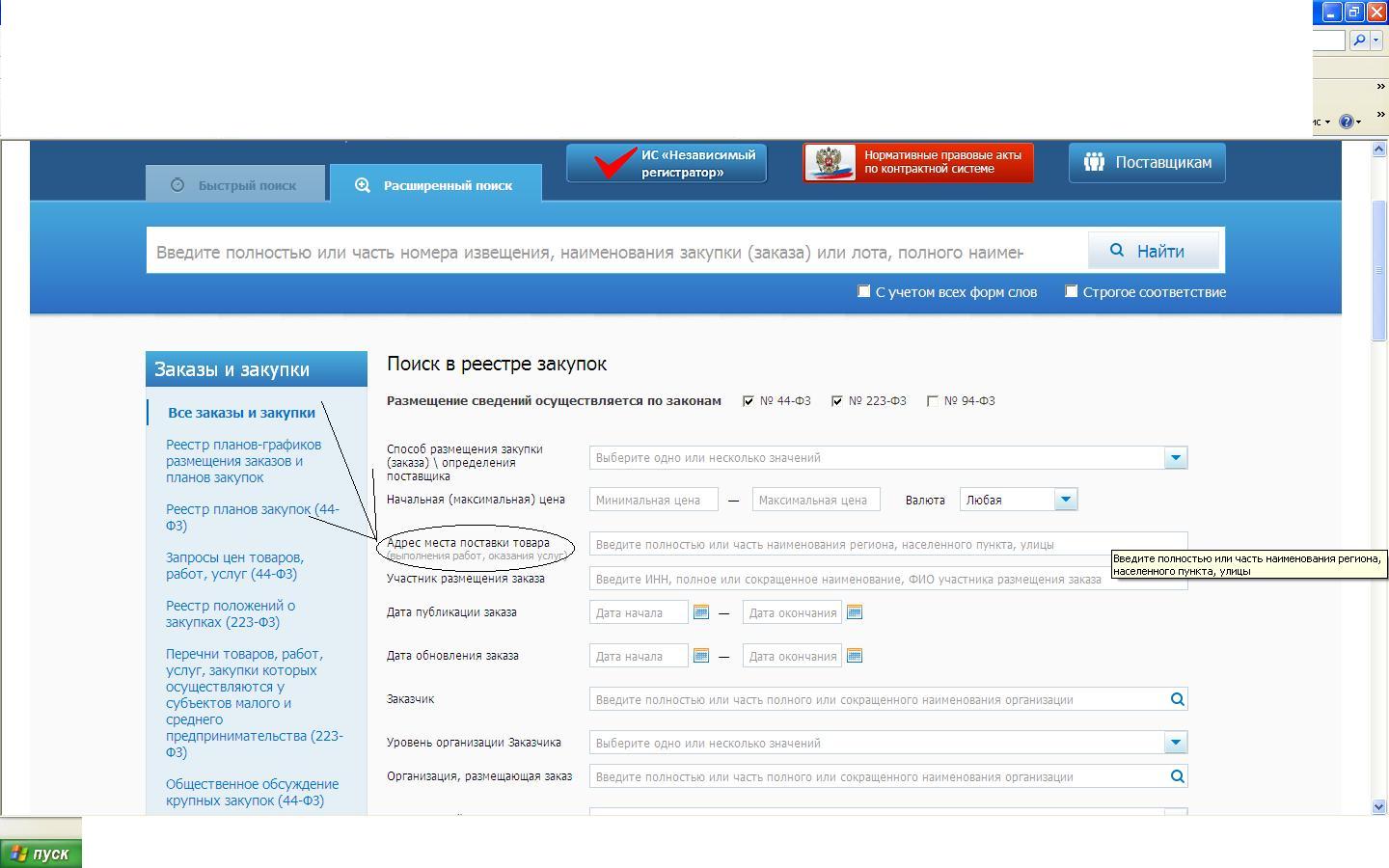 Re: Как искать закупки на zakupki.gov.ru по Городу?