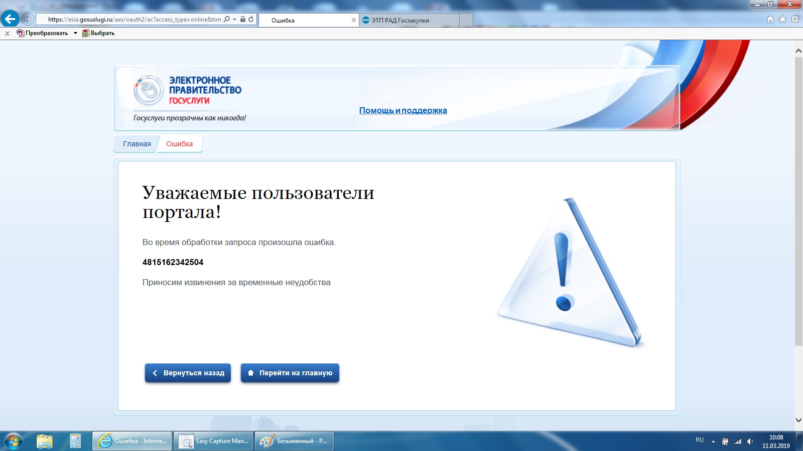 Re: Ситуация: ошибки при входе в ЕИС