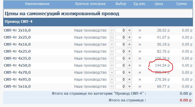 Там, помимо завышенной в 2 раза цены провода, и все остальные цены не соответствуют ссылкам.