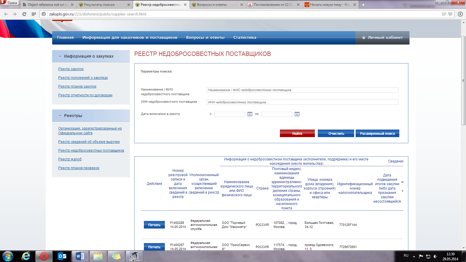 то есть только в быстром поиске по инн или в расширенном, но там тоже функции "распечатать справку" не имеется, можно только распечатать информацию о поставщике, в случае, если он включен в этот реестр.