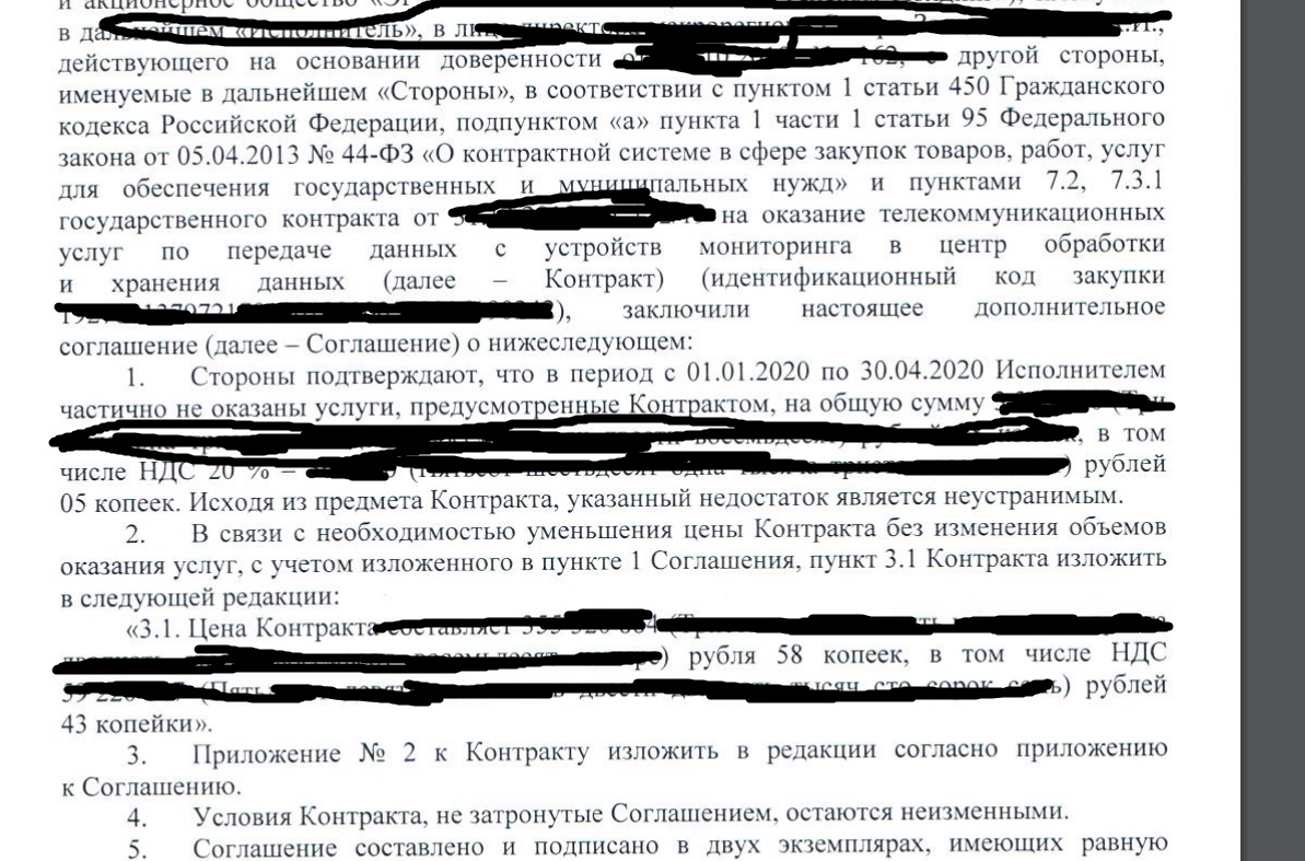 Во вложении допник найденный на просторах сайте госзакупок. Тут как-то странно написано... Вроде как Исполнитель не оказывает услуги и не может их оказать, но расторжение контракта нет. Вместо этого стороны признали, что Исполнитель не исполняет, поэтому снижаем стоимость без снижения объема и говорим, что услуги не оказаны.