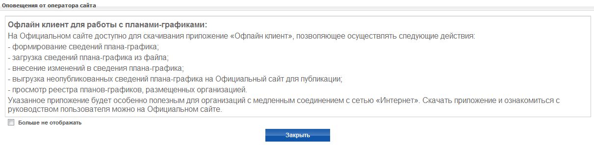 На ООС появилось сообщение про публикацию Плана-графика в режиме офлайн.