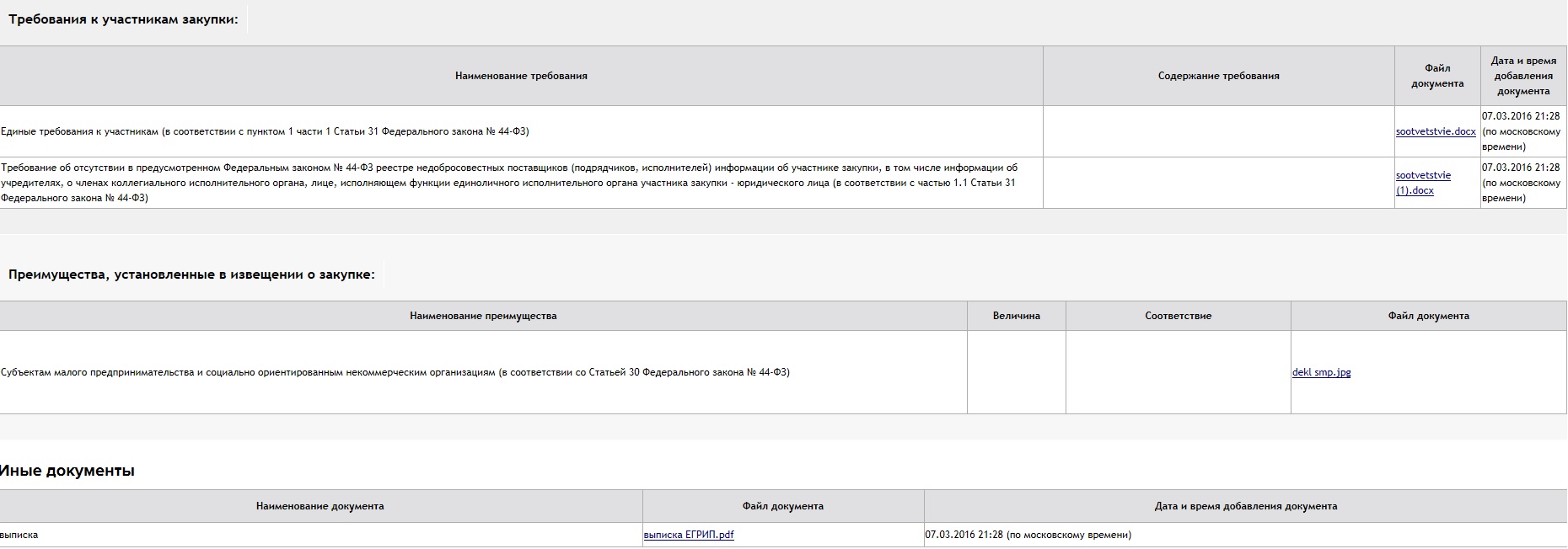 Re: Единые требования к участникам