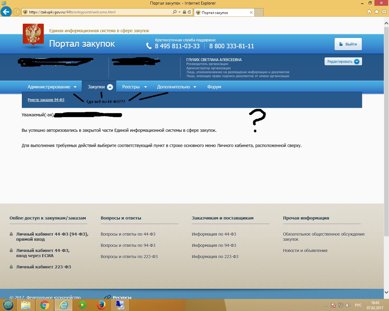 Dumber писал(а):Здравствуйте! Мы перерегистрировали организацию, но теперь не видим в Личном кабинете, всё что связано с 44-ФЗ (скрин прилагаю). Обратились в Техподдержку zakupki.gov.ru, пока - тишина. Кто попадал в такую ситуацию?