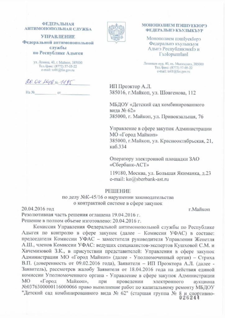 вот решения ФАС по аналогичной ситуации
