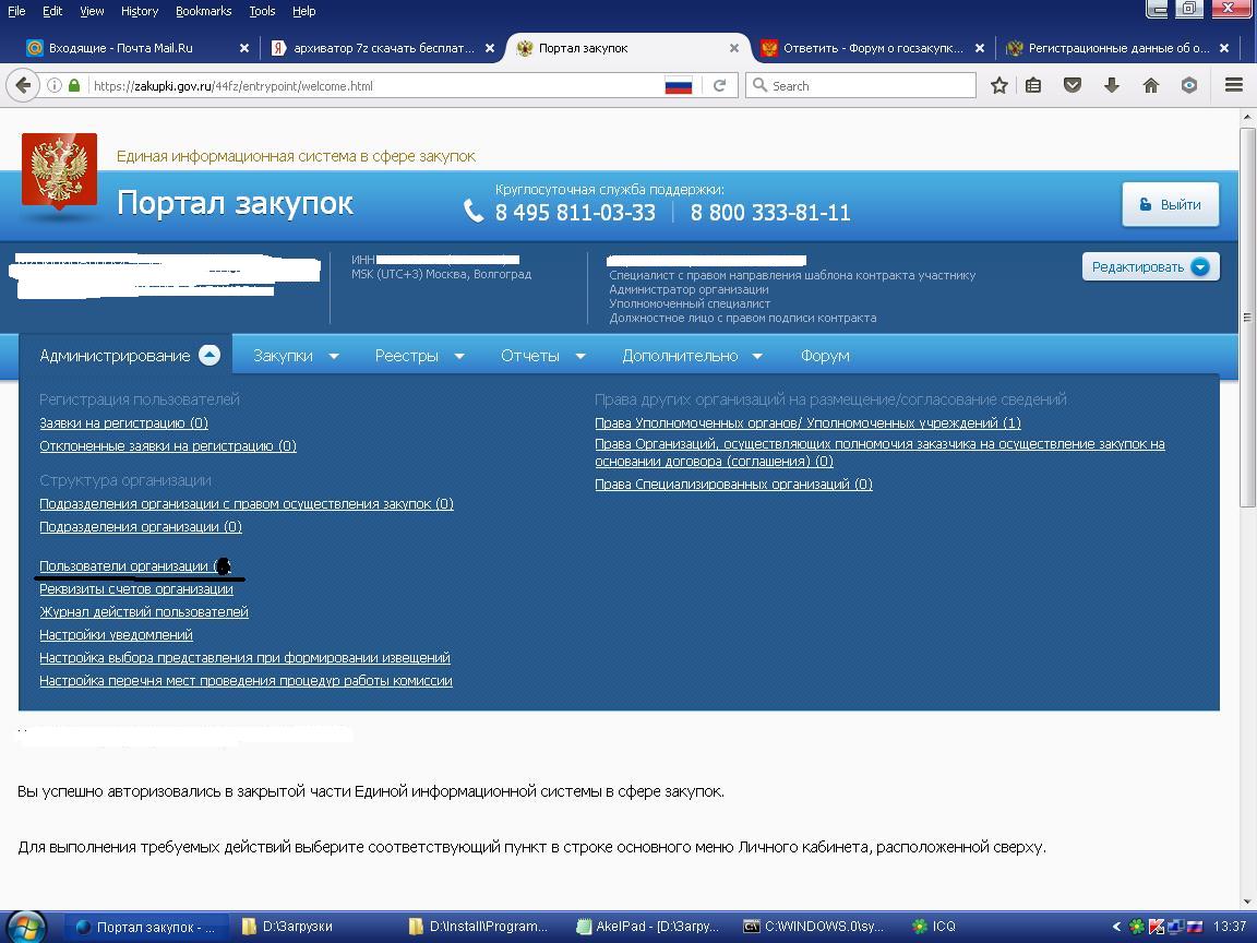 Re: Не пускает на сайт закупок в лич. кабинет
