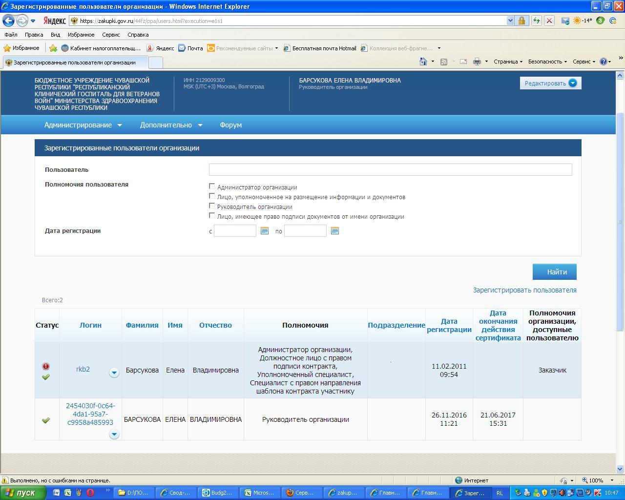 Здравствуйте, я сотрудник СПб ГКУ ЦБ при администрации Петроградского района Санкт-Петербурга. Я оказываю техническую помощь нашим подведомственным организациям (учебные учреждения) в работе на портале zakupki.gov.ru. В конце 2016 года в личных кабинетах наших подведомственных организаций появилось сообщение о необходимости перерегистрации пользователей. В большинстве случаев при моем содействии перерегистрация пользователей у подведомственных организаций прошла успешно. Однако возник ряд проблем, которые мы никак не можем решить, без помощи специалистов, обслуживающих ЕИС. В службу технической поддержки ЕИС