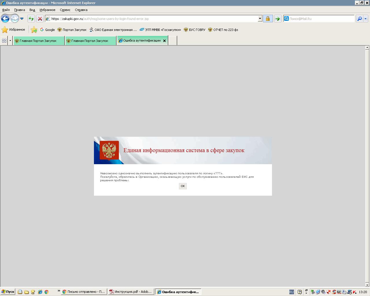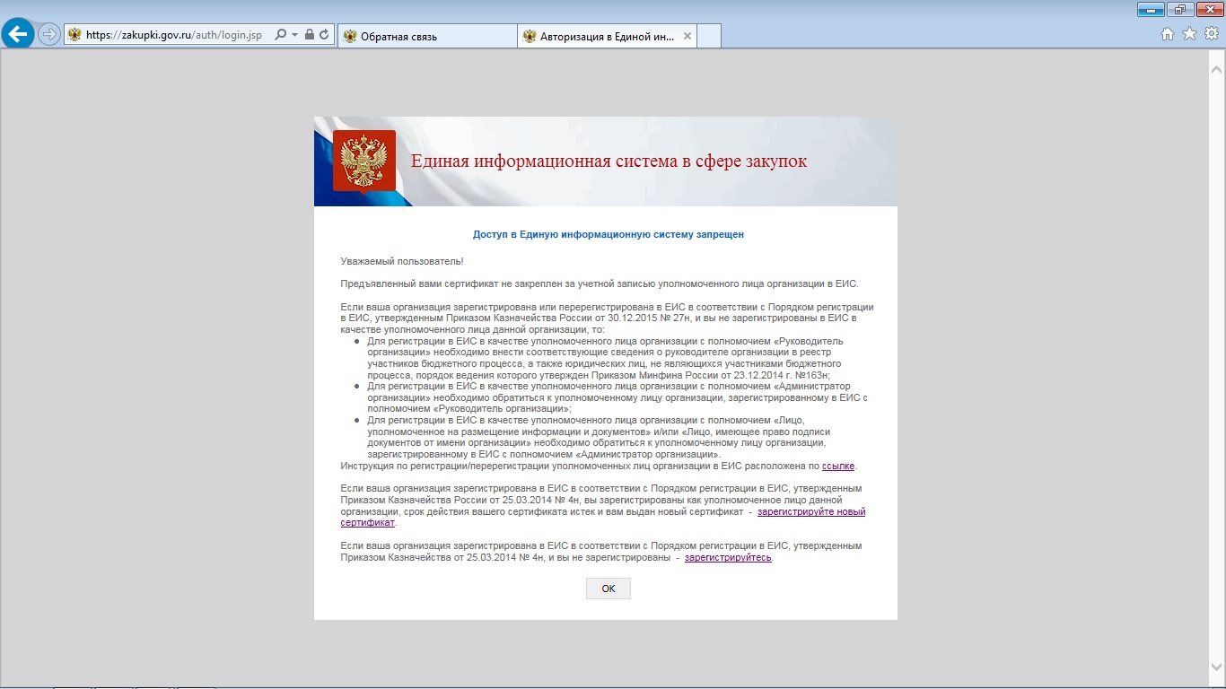 Ситуация: ошибки при входе в ЕИС - архив 1
