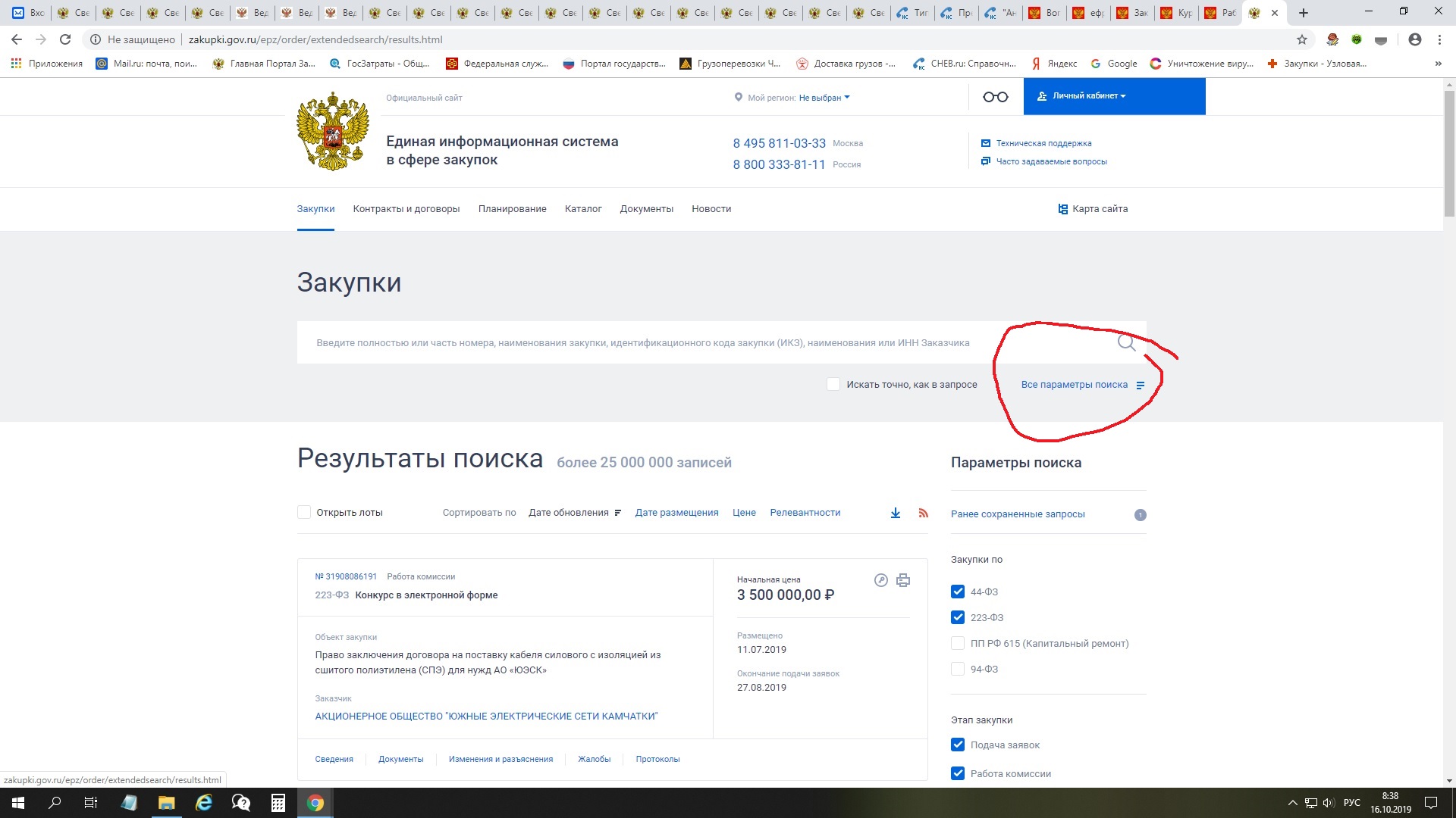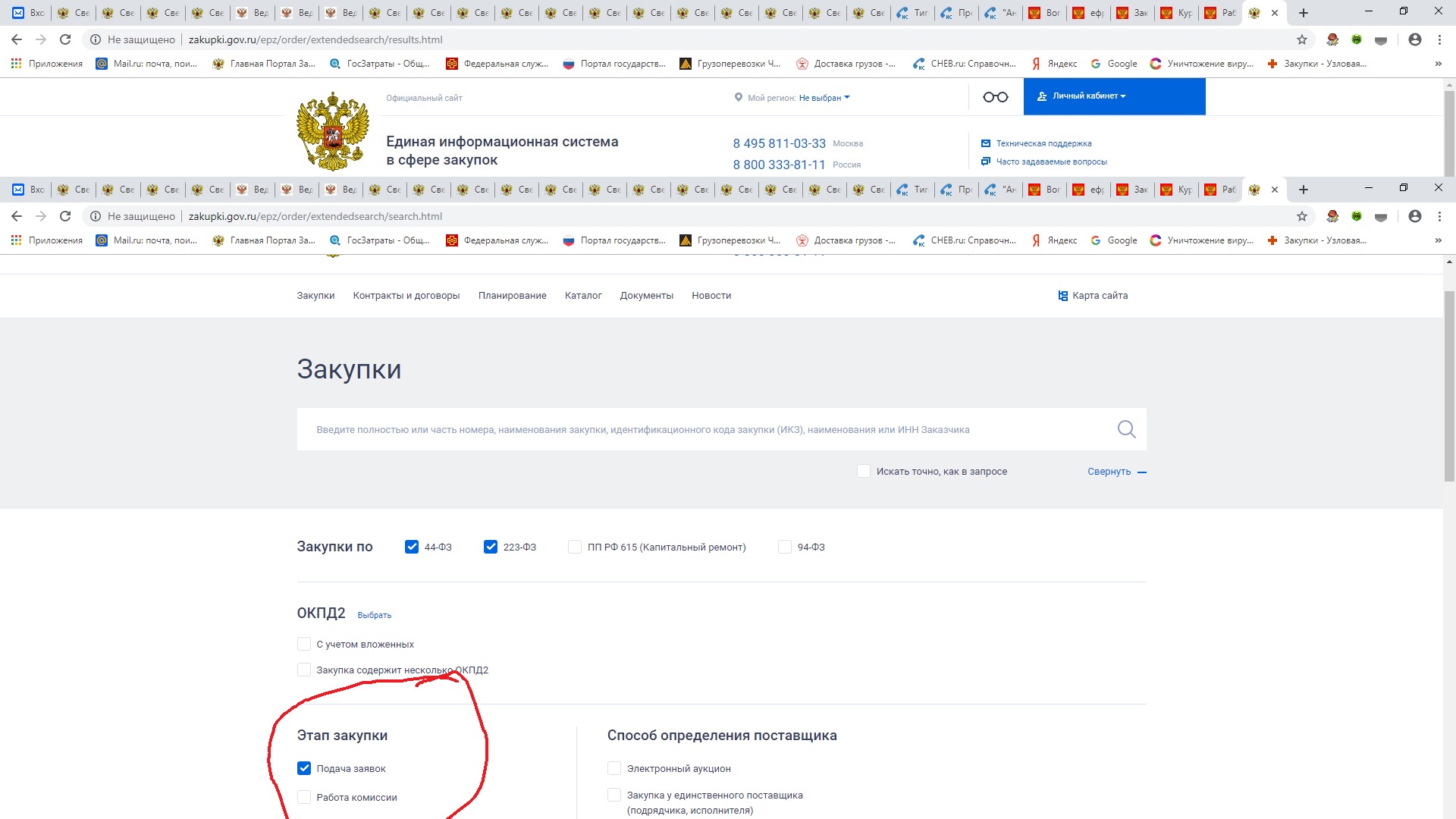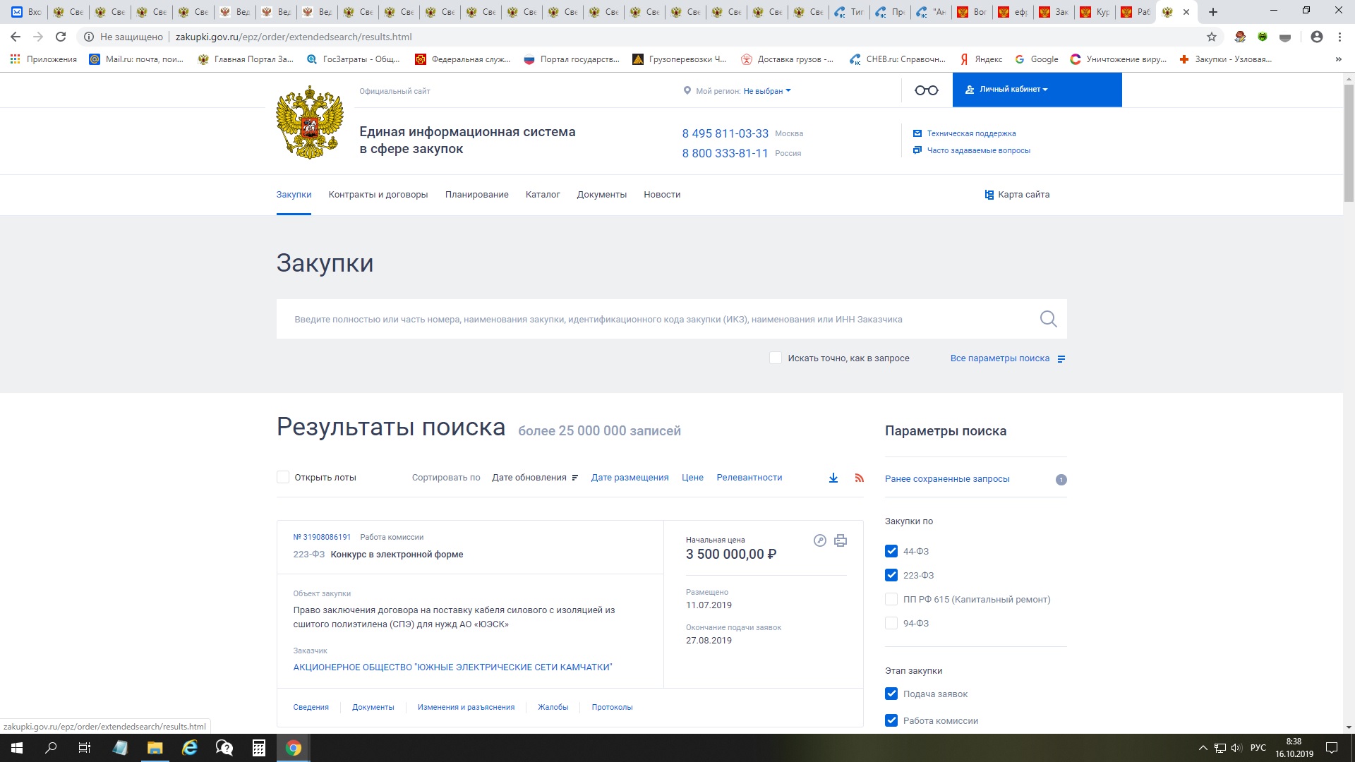 Выдаются закупки по нашему нужному региону.