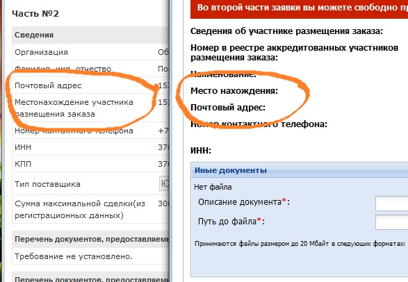 Скрины из подачи заявок на двух площадках (открыта в двух браузерах для компактности) - стандартная форма подачи Сбербанка и Россельторга :-):