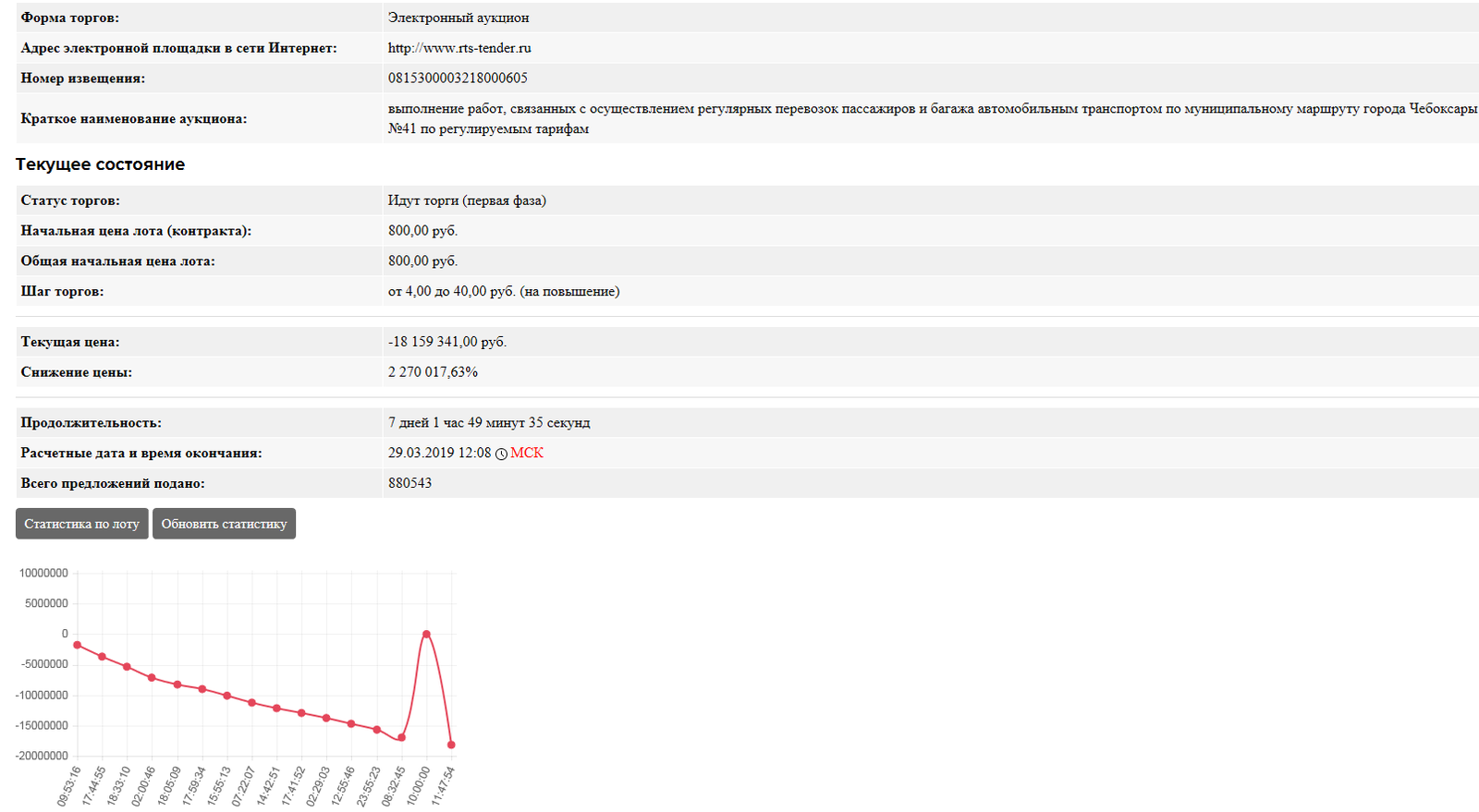 торги начались 22.03.2019. Идут ещё