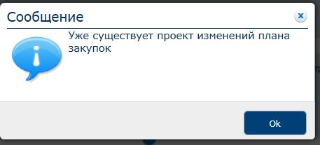 Valya1994 писал(а):Здравствуйте.Я честно признаюсь, что искала ответ на форуме, поэтому если данный вопрос уже задавался - не сердитесь)) Ситуация следующая: при попытке внести изменения в план-закупок, после заполнения вкладки "Общие сведения" выскакивает сообщение, что проект изменения плана-закупок уже существует (скрин прилагаю), в то время как по всем галочкам, никакого проекта изменений нет, и на контроле ничего нет. Ну все эти процедуры с ТП пройденный этап, ответа нет.