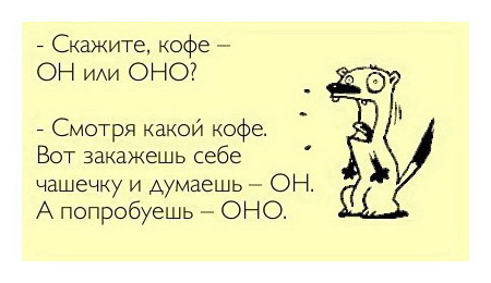 Привет! Зря смеётесь, на последнем заседании Министерства Рыбного хозяйства кофе причислили к среднему роду, так как ни первичных, ни вторичных половых признаков у него не было обнаружено. :-)