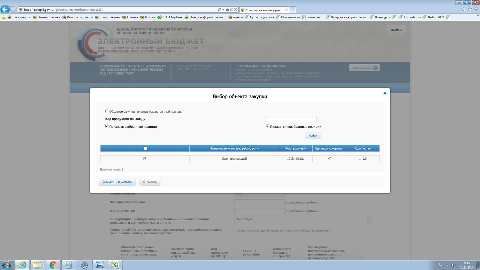 помогите. при выборе объекта закупки в реестре контракта не срабатывает кнопка сохранить. т.е так и висит окно. блокировки всплывающих окон нет. перенастроила браузер и что-то никак.