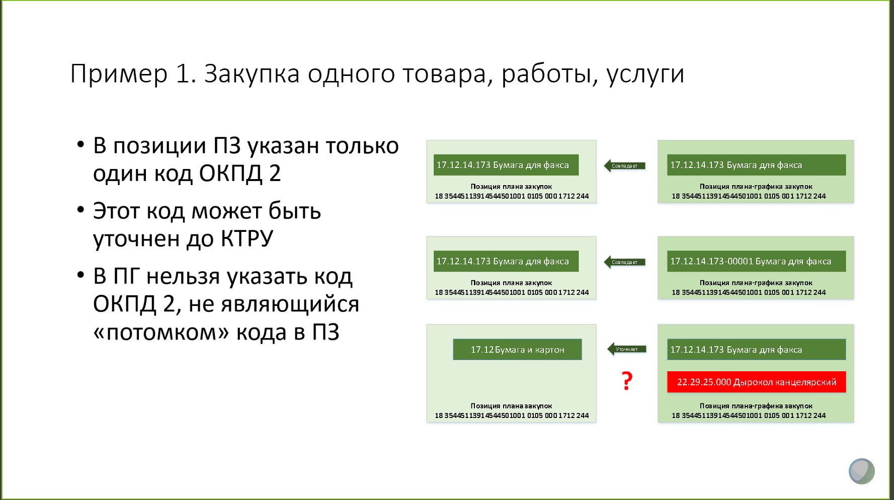 Оператор, и выясните еще, если не трудно, с какого перепугу убрали спецификацию в ПГ. Как мы будем ее заполнять, если ее нужно расписывать и в позиции, и в извещении? При единственном ОКПД2 ее расписать невозможно.
