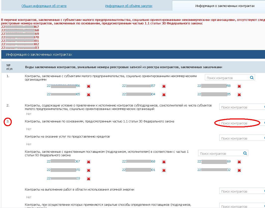 Ади писал(а):Ади писал(а):в пункте 3 "Контракты, заключенные по основаниям, предусмотренным частью 1.1 статьи 30 Федерального закона" , прикрепила контракты с ЕП (монополистами)...