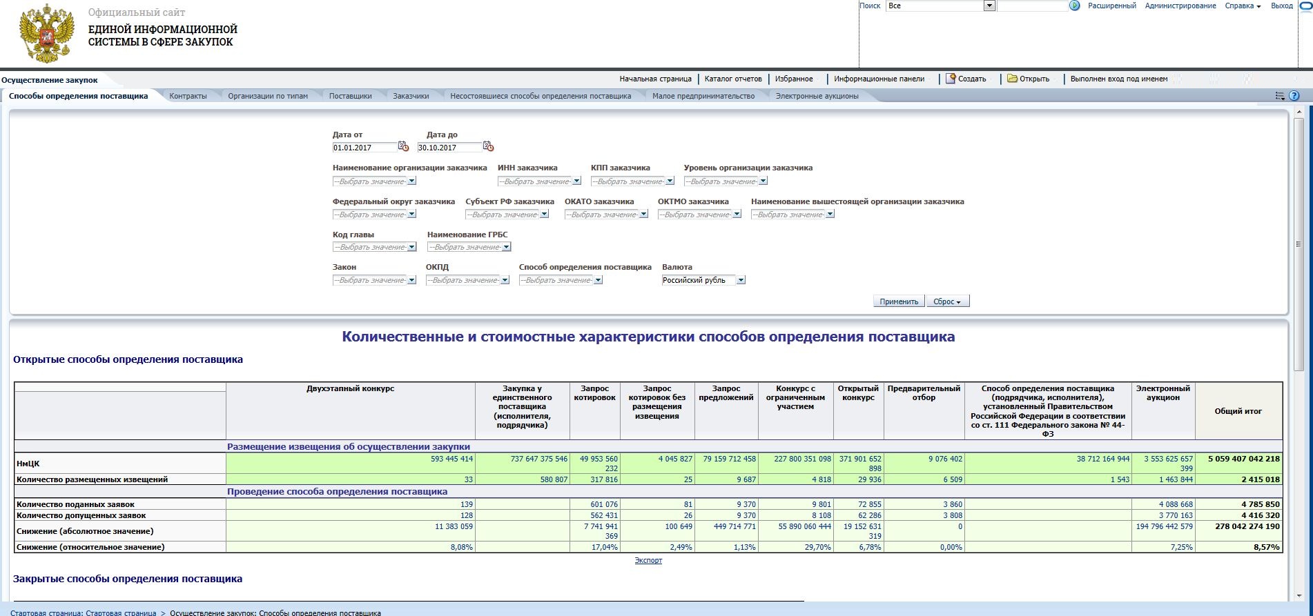 Добавлю, мы не Контролирующий орган, а Заказчик, можем строить отчет только по своей организации.