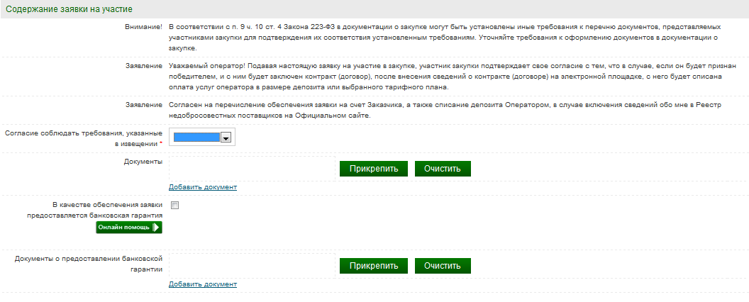 Заполнение заявки на участие
