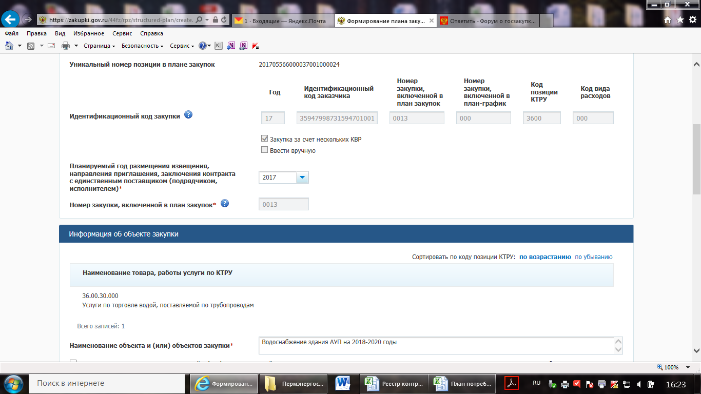 Нет, редактирую опубликованную. Я правильно понимаю, что при создании новой позиции в ПЗ код позиции КТРУ ввожу вручную? И не выбираю наименование ТРУ по КТРУ?