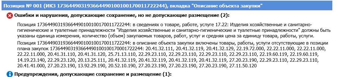 sv_morozova писал(а):Подскажите, у всех такая же ерунда опять вылезла при размещении ПГ??? Меняли ПЗ и ПГ. ПЗ прошел контроль, а ПГ не проходит и даже не дает опубликоваться, т.к. закупка по канц.товарам, которая была летом не расписана по ОКПД каждая строчка в ПЗ. Раньше то этого не требовалось! Получается все конкурентные закупки, где было несколько ОКПД теперь не дадут опубликовать ПГ, так как они не были расписаны в ПЗ....