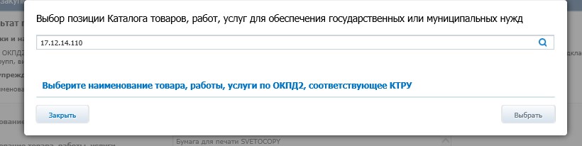 Хочу поправить ОКПД, но открывается каталог ТРУ, где нет бумаги.