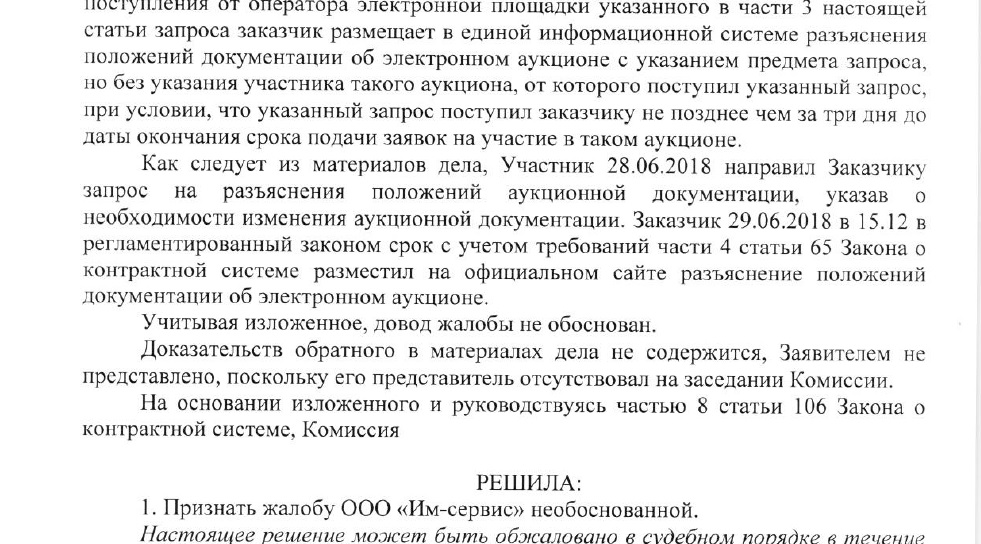 Приняли и ответили из серии - заказчик прав , во время разместил разъяснения. А мы не правы, причем одна из причин не прислали своего представителя( заранее до заседания отправили ходатайство о рассмотрении в отсутствие...).