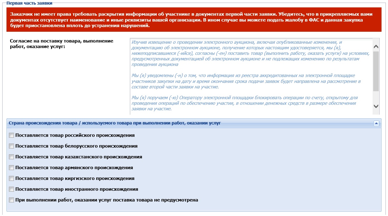 Вопрос: выполнение работ с материалами и оборудованием. Заказчик просит только согласие (в АД про конкретные показатели тоже не слово). Нужно ли в Сбер-АСТ указывать каждую позицию и ее страну? Если не указать, отклонят?