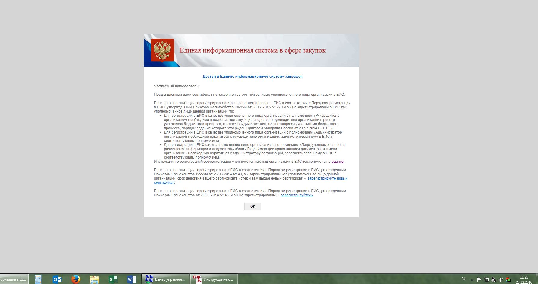 Доброе время суток, в связи с необходимостью перерегистрацией пользователей, была получена ЭЦП Руководителя организации, соответственно установлена, но под этой подписью не заходит в личный кабинет по 44 ФЗ. В записях ЮГРЛ и сводном реестре руководитель организации указан верно. ЭЦП в УФК по Липецкой области проверена, все верное, но по данному сертификату доступ пользователя в личный кабинет запрещен, тогда становится вопрос, как зайти под руководителем в личный кабинет и перерегистрировать пользователей. Третий день не могу дозвониться в тех.поддержку, а складывается ситуация, что через 3 дня доступ для пользователей в личный кабинет будет закрыт. До этого момента подпись руководителя организации не использовалась и соответственно учетная запись заведена не была. Все полномочию по подписи на основании приказа возлагались на заместителя, прошу оказать содействие по решению данного вопроса!!!