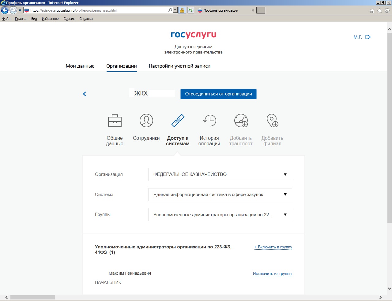 Указание полномочий пользователя осуществляется администратором организации в Единой системе идентификации и аутентификации (ЕСИА).