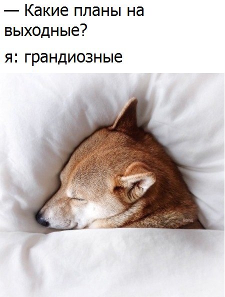 Друзья! Всем отличных выходных! Выспаться как следует и оторваться от души