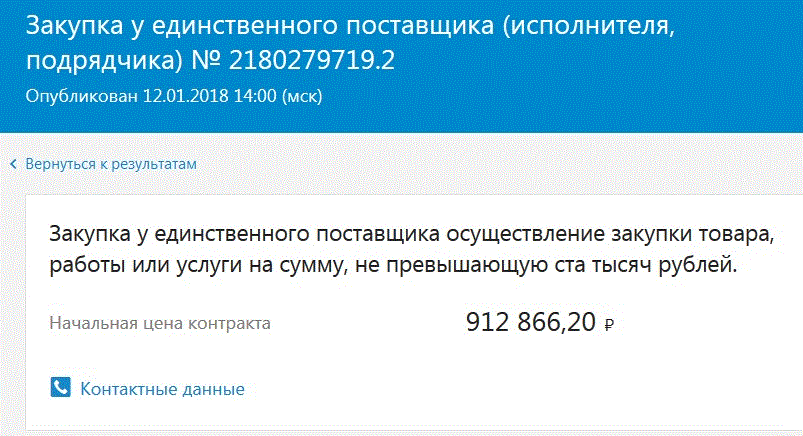 KKBC писал(а):Закупка у единственного поставщика осуществление закупки товара, работы или услуги на сумму, не превышающую ста тысяч рублей.
