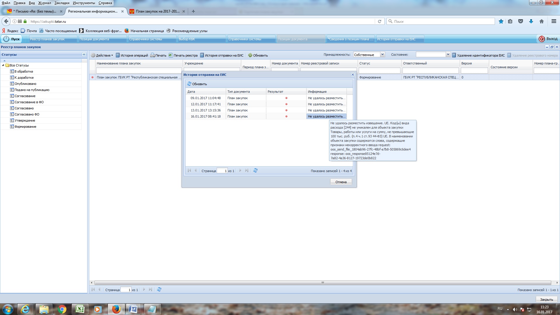 Плановый период 2017-2019. При сохранении пишет - Первый год планового периода должен быть на единицу больше финансового года планирования плана закупок. Дальше двигаться не дает. Понимаю, что это надо было сделать в 2016 году, но у меня не было доступа.Только сегодня получилось пройти перерегистрацию и зайти в ЕИС. Как быть?