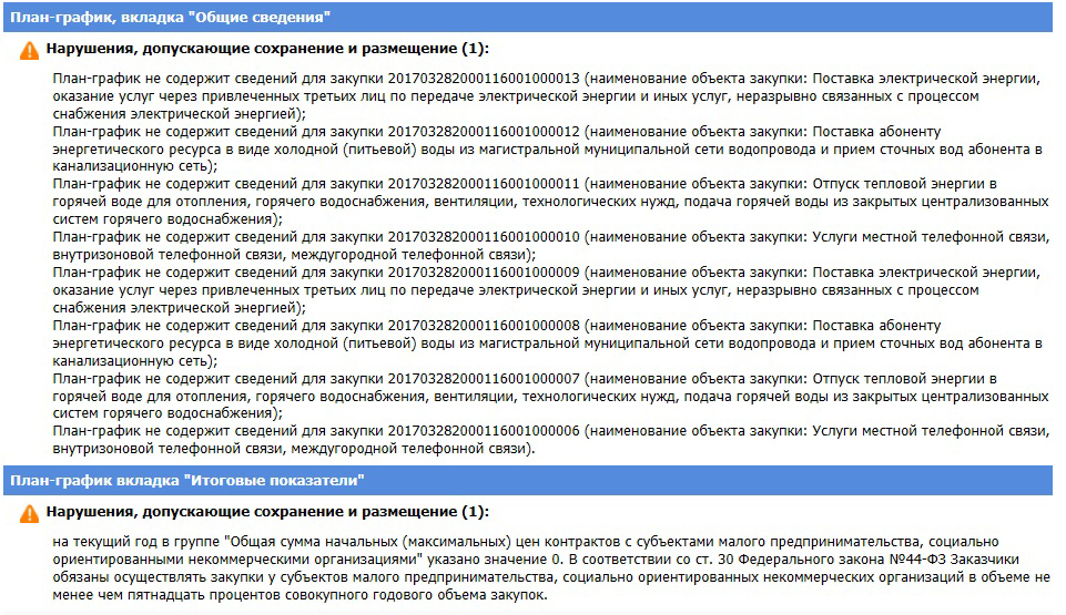 P.S.: Просто для успокоения по поводу второй ошибки на скриншоте. У нас только контракты на коммунальные услуги по ст. 93 и единственный поставщик. Значит, объем СМП нам выполнять не нужно. Правильно?