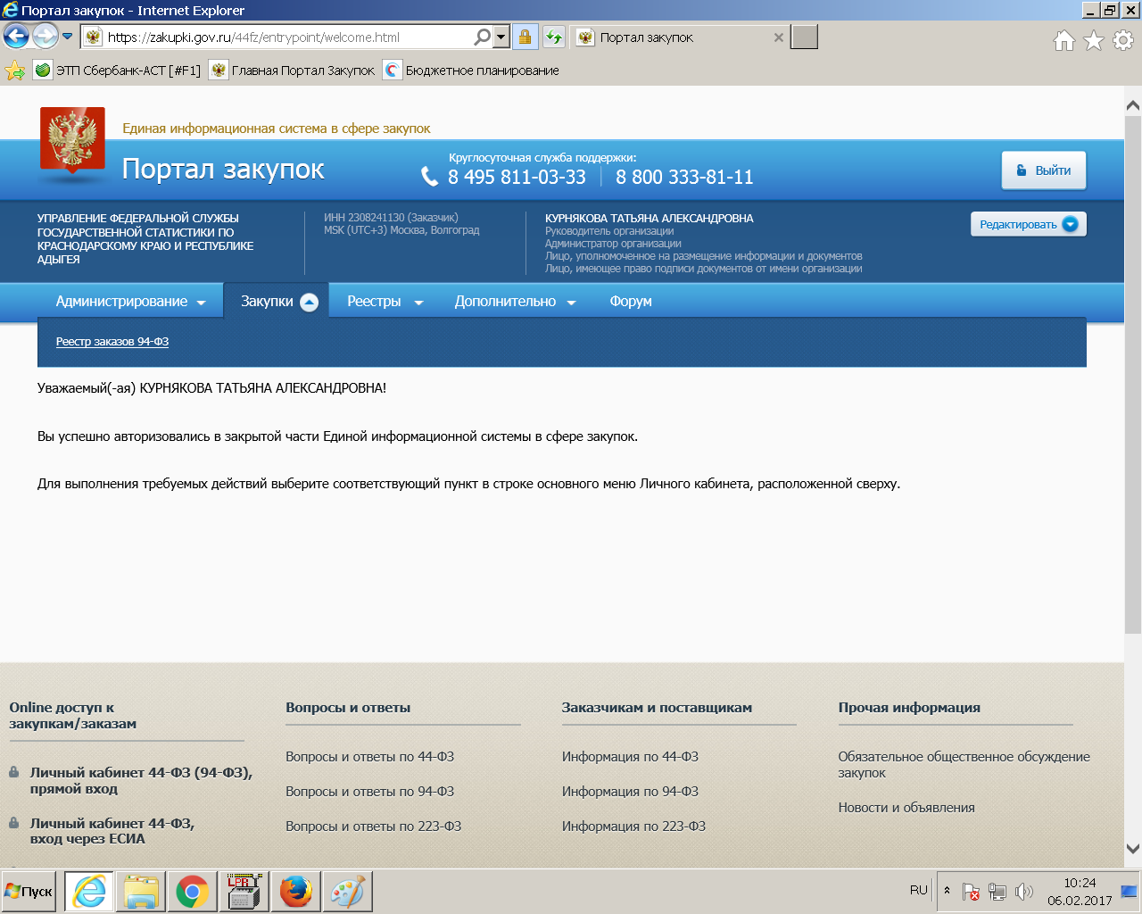 Во вкладке "ЗАКУПКИ" - "закупки по 44-ФЗ" должны быть ваш ПГ и ПЗ.