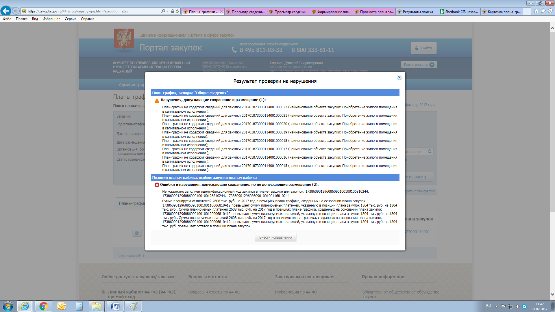 Ни у кого нет в плане закупок, в разделе номер закупки, включенной в план график двойных номеров. Вносились изменения в ПГ по этим позициям, менялся предмет, сумма и период, теперь вообще не дает редактировать эти позиции, после выбора основания для внесения изменений выкидывает и предлагает перейти на главную, при этом в ПЗ этих позиций по 2 номера закупки, включенной в план график. Может как то можно или даже нужно что бы остался только один номер ? А на контроле выдает что не корректно заполнен номер закупки, при этом указывает номер, а в нем не хватает 3 цифр, номер закупки в ПГ(это в результатах проверки на нарушение), но в самих позициях ПГ номера закупок стоят.