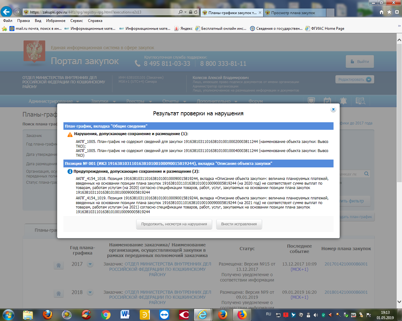 А вторые два информационных сообщения означают, что в позиции, соответствующей позиции ПЗ № 9, не расписали спецификацию (или расписали с ошибкой) на 2020 и 2021 год. То есть в ПГ по этой позиции заполнены планируемые платежи на 2020,2021, а в спецификации ТРУ эти деньги не расписаны.