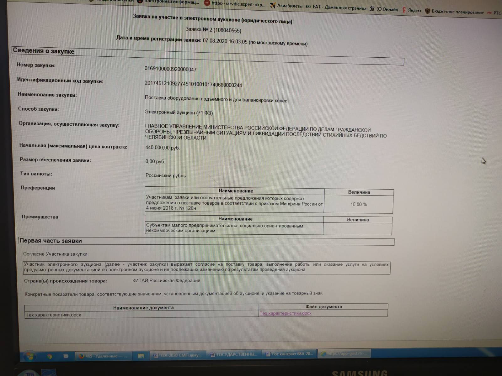 Уведомляем Вас о том, что в отношении вашей заявки № 108040555 принято решение о допуске к участию в электронном аукционе № 0169100000920000047 Поставка оборудования подъемного и для балансировки колес. Cреди предложений участников закупки, признанных участниками электронного аукциона, присутствуют предложения о поставке товаров российского происхождения. Электронный аукцион состоится на электронной площадке РТС-тендер (http://www.rts-tender.ru/) 11.08.2020 в 08:05:00 (по московскому времени).
