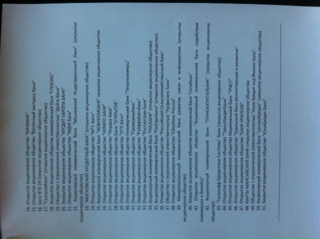 Bojitel писал(а):Перечень банков - пожалуйста..