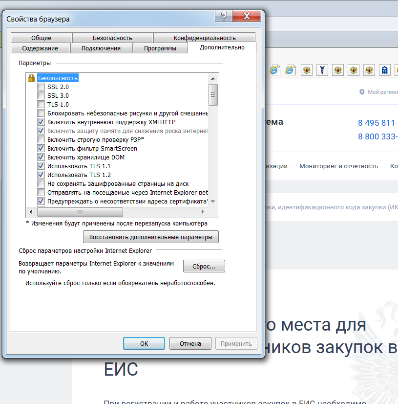 Что нужно изменить и где в IE?