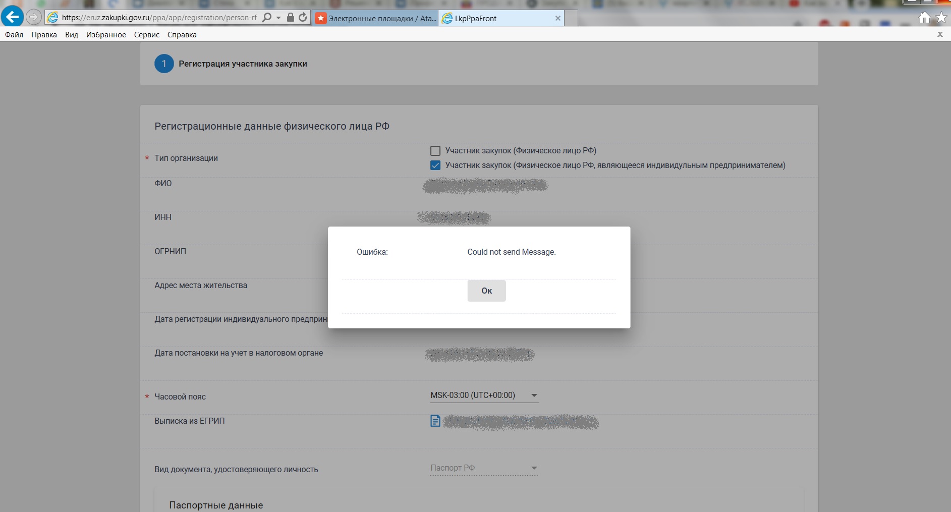 При регистрации ИП в качестве участника закупки появляется страница : "Регистрационные данные физического лица иностранного государства". Пользователь не является иностранным представителем.