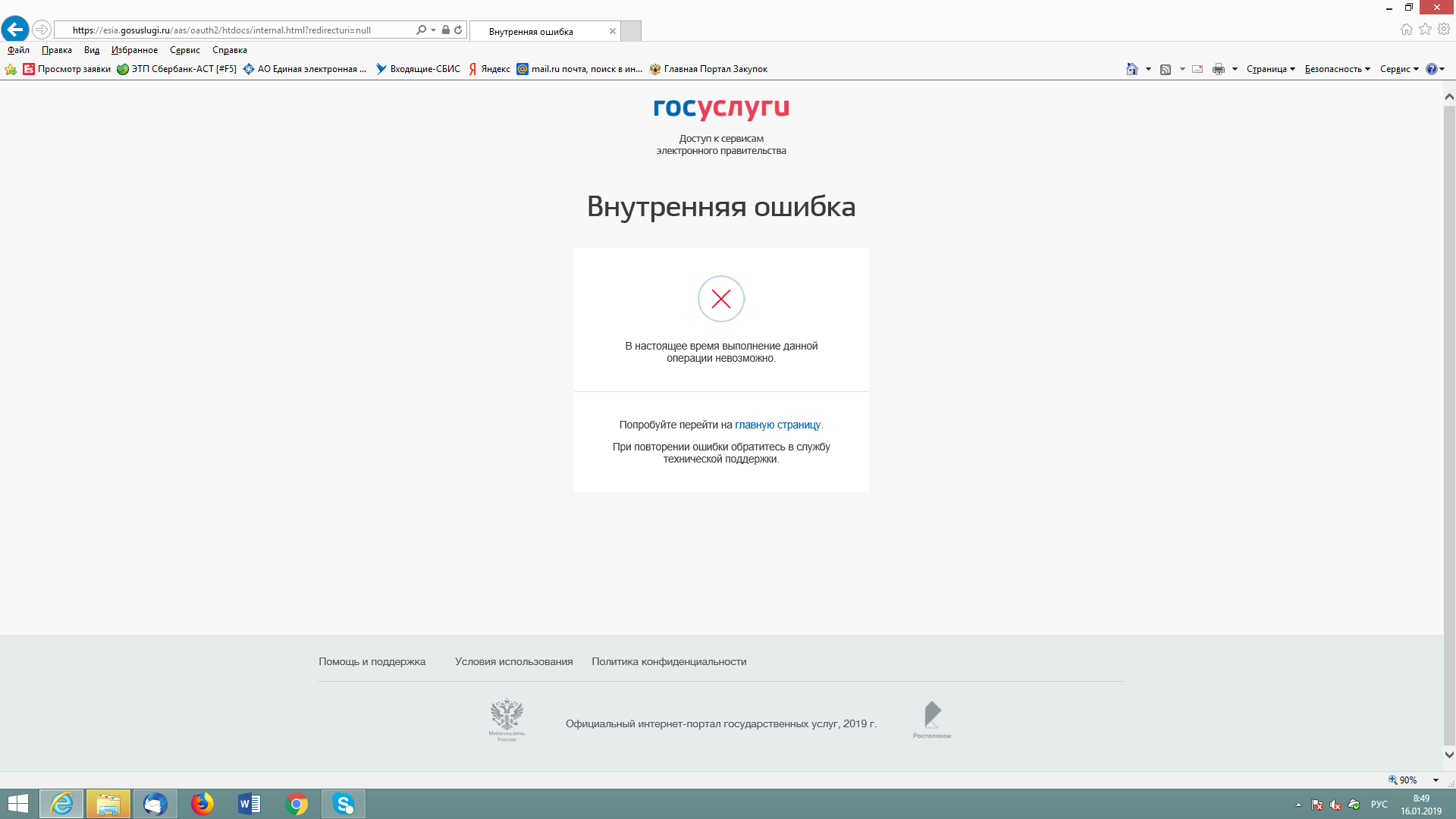 На какой стадии входа на тп роселторг возникает ошибка?
