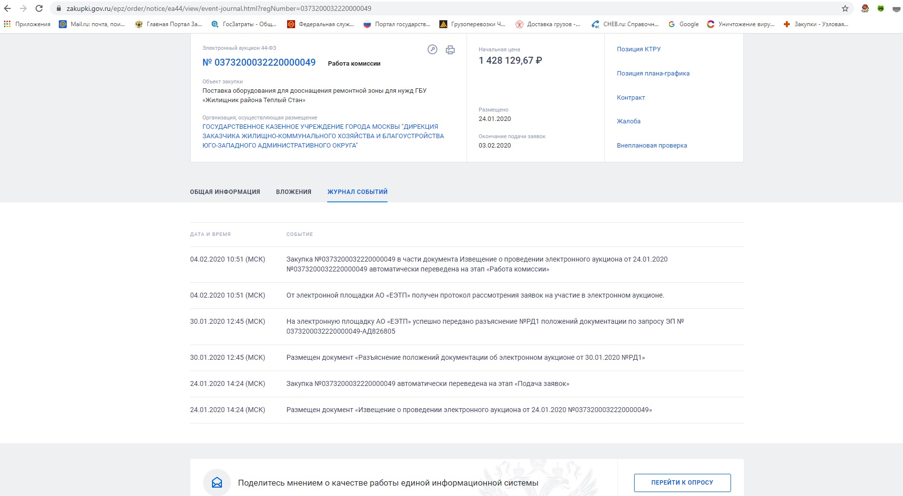 Кнопка "События" в строке этой процедуры при просмотре реестра закупок