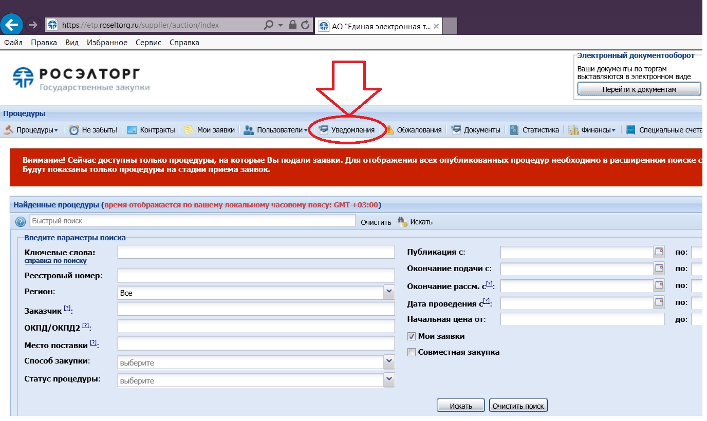 через поисковик почты открыть письма с росэлторга и методом перебора поискать свой запрос...