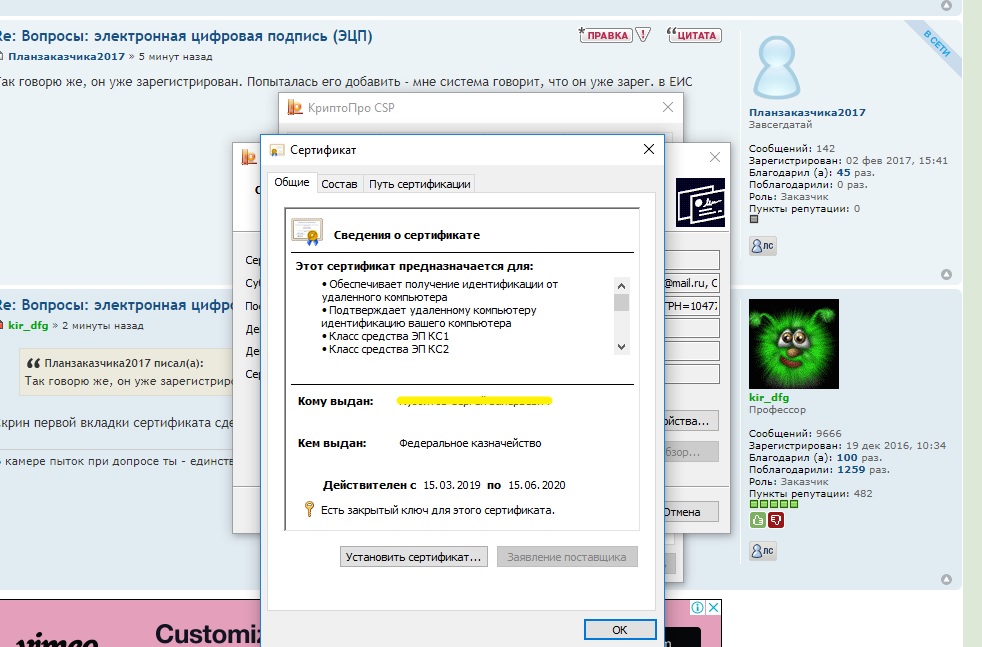 Скрин первой вкладки сертификата сделайте. Фамилию можете скрыть.